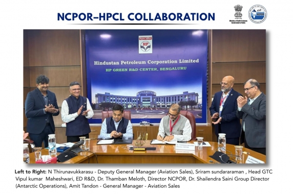 India took a step forward towards the decarbonization of its Antarctic stations. An MoU is signed by Dr. Thamban Meloth, Director, NCPOR and Shri Vipul Kumar Maheshwari, Executive Director, R&D, Hindustan Petroleum Corporation Limited (HPCL) at the HP Green R&D Centre, Bangalore, for the development and usage of sustainable fuel.