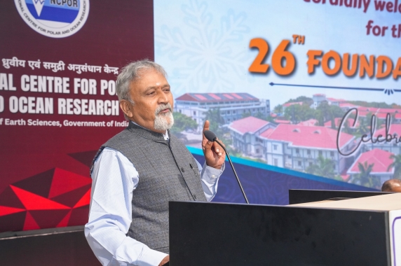 During the 26th Foundation Day celebrations, Dr. Thamban Meloth, Director, NCPOR, highlighted the institute’s key achievements and reaffirmed its commitment to advancing polar and ocean sciences. He emphasized India’s growing leadership and active engagement in the global polar community. Offering an academic perspective, Prof. Suman Kundu, Director, BITS Goa, underscored the importance of strengthening collaboration between academia and research institutions to create greater opportunities for young researchers and students.