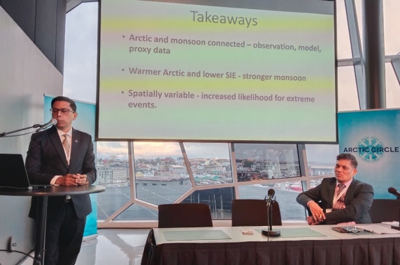 Dr. Manish Tiwari, Group Director (Arctic Operations) and Scientist-F at NCPOR, participated in the Arctic Circle Assembly 2025, a leading global forum for dialogue and collaboration on Arctic affairs held in Reykjavik, Iceland. He participated in the session “The Role and Importance of the Global South in the Arctic,” where he presented scientific evidence illustrating the climatic interconnections between the Arctic and the Global South, and highlighted India’s significant contributions toward understanding this vital teleconnection.