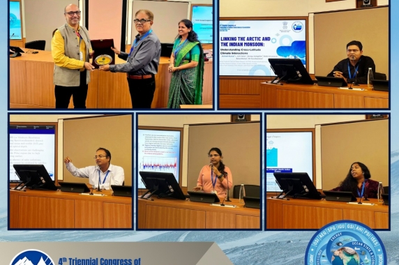 Dr. Thamban Meloth, Director, NCPOR, delivered the Keynote Talk on “Himalayan Cryosphere and Rising Hazards in a Changing Climate” during the Climate Change session chaired by Dr. Suryachandra A. Rao (Director, IITM) and convened by Dr. C. Gnanaseelan (OSI) and Dr. Rahul Mohan (Scientist G and Group Director, Polar Sciences, NCPOR). The session also featured four research presentations by NCPOR scientists, highlighting diverse aspects of cryospheric changes, polar–tropical climate linkages, and ocean–atmosphere interactions, reaffirming NCPOR’s pivotal role in advancing understanding of the Earth’s interconnected climate systems — from the Himalayas to the Poles.