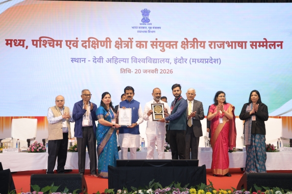 राजभाषा विभाग, गृह मंत्रालय, भारत सरकार, नई दिल्ली द्वारा दिनांक 20 जनवरी 2026 को इंदौर, मध्य प्रदेश में आयोजित मध्य, पश्चिम एवं दक्षिण क्षेत्रों के संयुक्त राजभाषा सम्मेलन एवं समारोह में राष्ट्रीय ध्रुवीय एवं समुद्री अनुसंधान केंद्र (एनसीपीओआर) को वर्ष 2024-25 के लिए राजभाषा के क्षेत्र में उत्कृष्ट कार्य निष्पादन हेतु प्रथम पुरस्कार से सम्मानित किया गया।