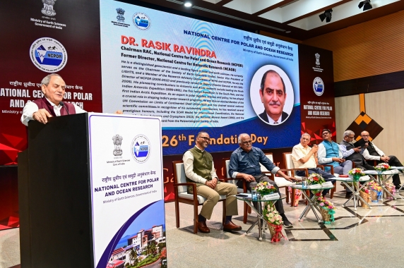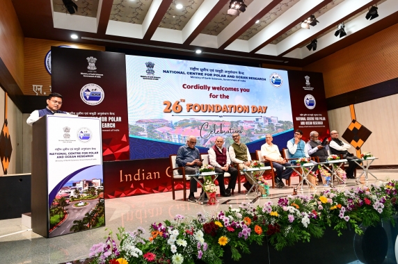 During the 26th Foundation Day celebrations, Dr. Thamban Meloth, Director, NCPOR, highlighted the institute’s key achievements and reaffirmed its commitment to advancing polar and ocean sciences. He emphasized India’s growing leadership and active engagement in the global polar community. Offering an academic perspective, Prof. Suman Kundu, Director, BITS Goa, underscored the importance of strengthening collaboration between academia and research institutions to create greater opportunities for young researchers and students.