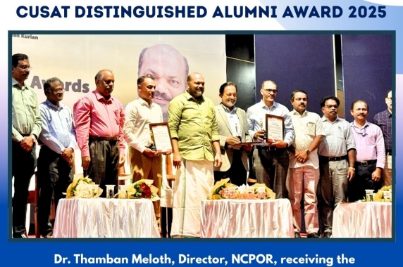 Dr. Thamban Meloth, Director, National Centre for Polar and Ocean Research (NCPOR), has been honoured with the CUSAT Distinguished Alumni Award 2025 for Academic and Research Excellence. The award was presented by Shri P. Rajeeve, Hon. Minister for Industries and Law, Government of Kerala, on 4 November 2025 at CUSAT, Kochi.
